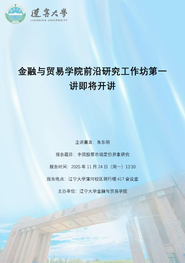 预告|金融与贸易学院前沿研究工作坊第一讲即将开讲