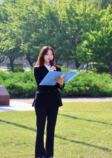 学生代表罗佳宁同学在国旗下讲述红色故事,传递使命担当。她的讲述紧扣红色基因传承与青春使命践行,字句间激励学子将爱国情、强国志融入日常学习生活。